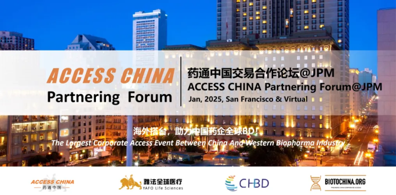 Compared to other conferences such as Bio Convention or Bio Showcase, ACCESS CHINA has the broadest coverage of Chinese strategic partners and investors who are looking for in/out licensing opportunities.