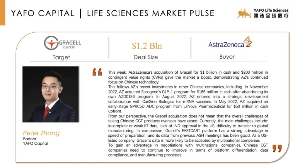 As we approach the end of 2023, there are 3 licensing deals between December 25 and 29, 2023. Specifically, there are 2 Out-of-licensing deals and 1 overseas deal. This week’s spotlight is on AstraZeneca’s proposed acquisition of Gracell, aimed at furthering its objectives in cell therapy to address cancer and autoimmune disorders.