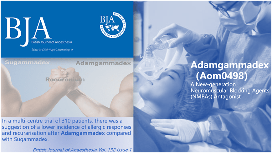 Adamgammadex (Aom0498) is the next generation of specific neuromuscular blockade antagonists and has been shown to rapidly reverse neuromuscular blockades induced by rocuronium at various depths within 3 minutes. Compared to Sugammadex, Adamgammadex has a lower incidence of severe adverse reactions, such as allergic reactions, neuromuscular blockade recurrence, bradycardia, and laryngospasm, while maintaining more stable efficacy.