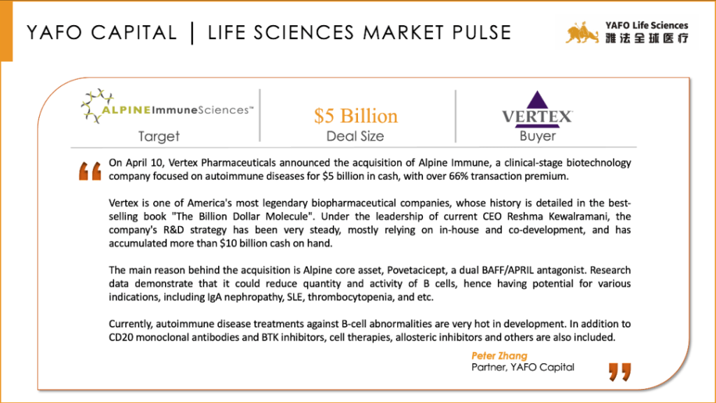 雅法资本成立于2013年,作为新型投资和投行咨询机构,致力于中国及海外生物医药项目的投资、融资服务、产品引进和资产孵化等。雅法在生物医药跨境授权及并购业务领域过往三年交易数量排名第一。旗下雅法基金联合药企进行资产投资和并购,雅法全球医疗专注于医药产品跨境及国内授权交易。基于雅法在全球广泛的人脉与资源网络,在过去十年成功推进了大量的海外项目进入中国市场并协助多个中国产品完成海外授权。雅法拥有经验丰富的全球交易团队,覆盖美国、日本 、欧洲等全球主要医药创新区域。核心合伙人均为华尔街资深投行人士或具有跨国药企经历,为客户交易提供强力支持。雅法总部位于上海,在伦敦、洛杉矶、东京、米兰、剑桥等地均设有分部。