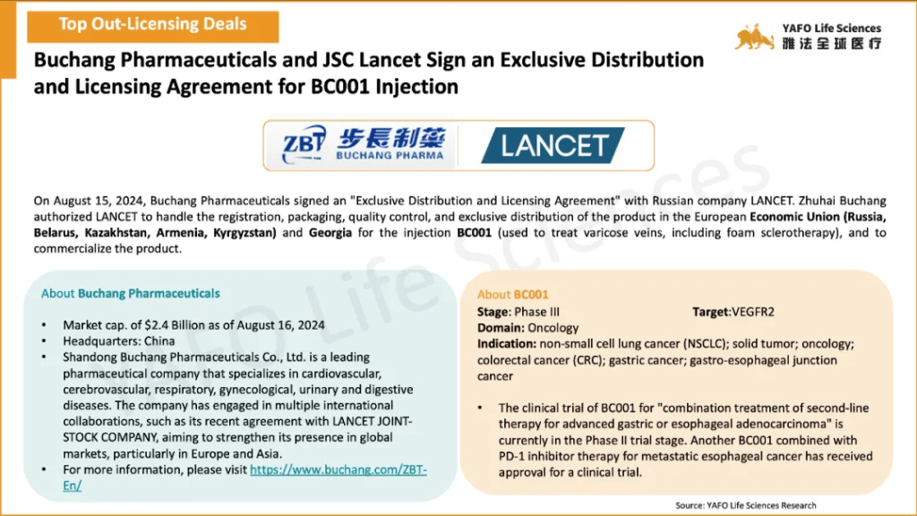 2024年8月,全球医药市场共签署了47项资产授权和合作协议。其中,中国医药市场达成24项交易,包括11项出海交易、3项引进交易,和10项引进交易。