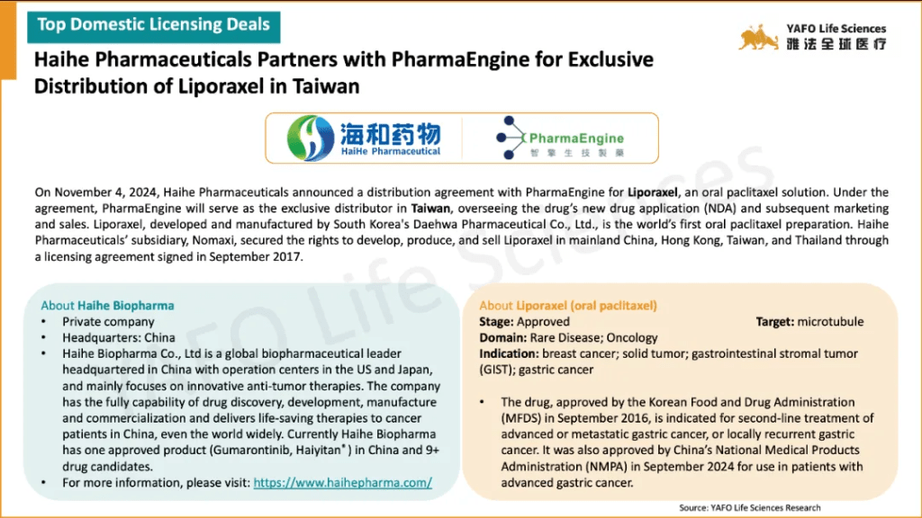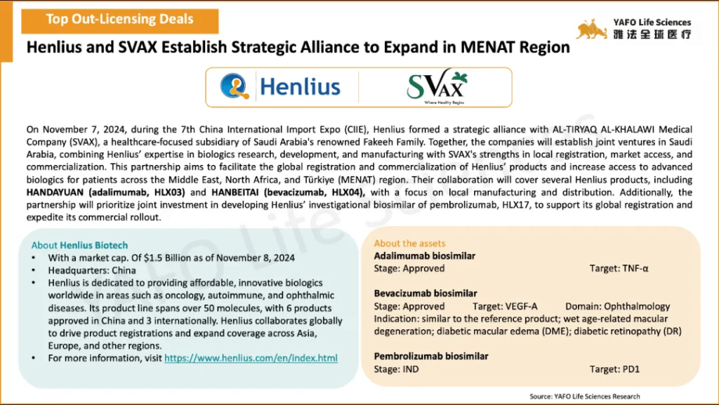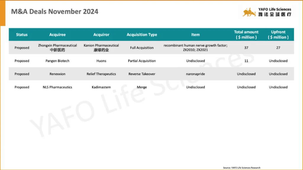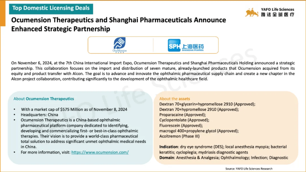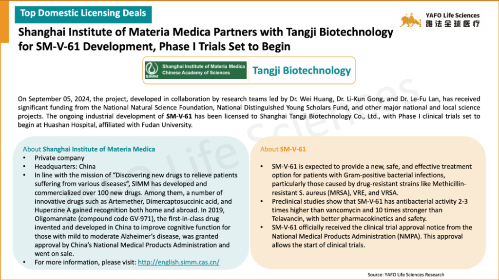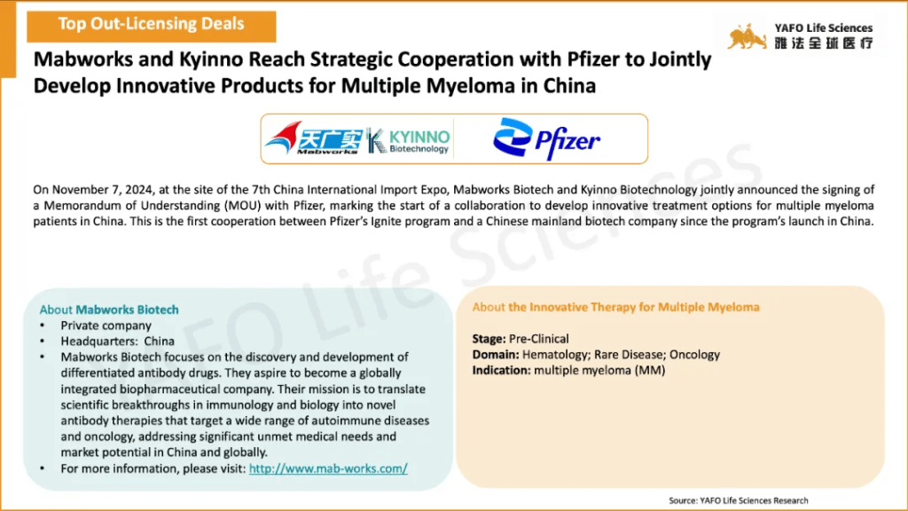 In the first week of November, 17 licensing and cooperation deals were signed in total. In the China biotech industry, there were three out-licensing deals and seven domestic deals.
