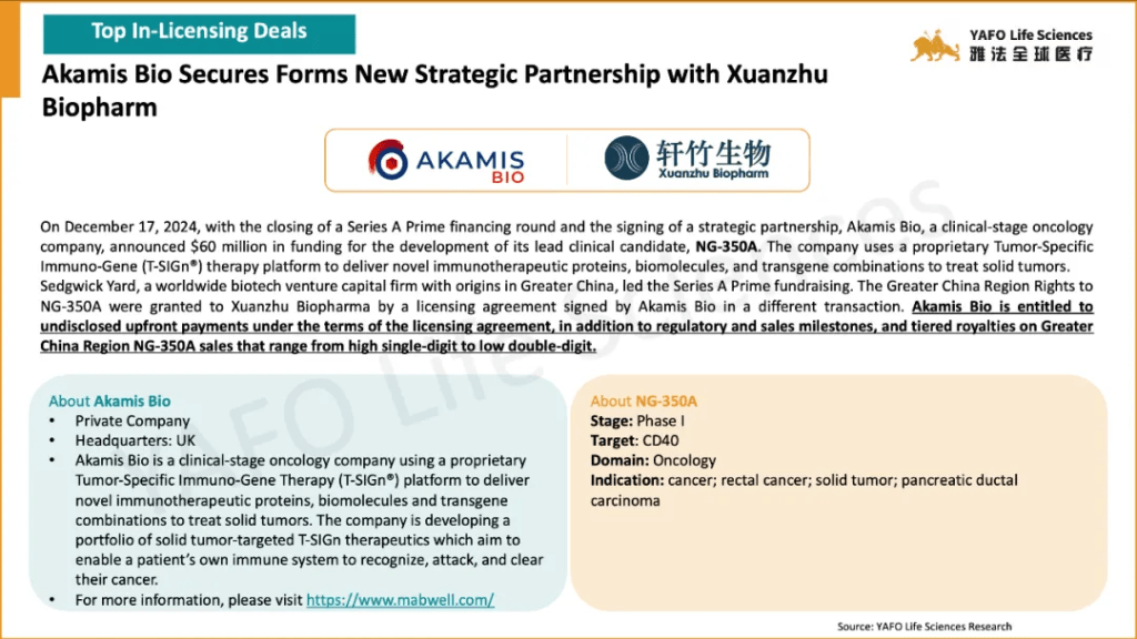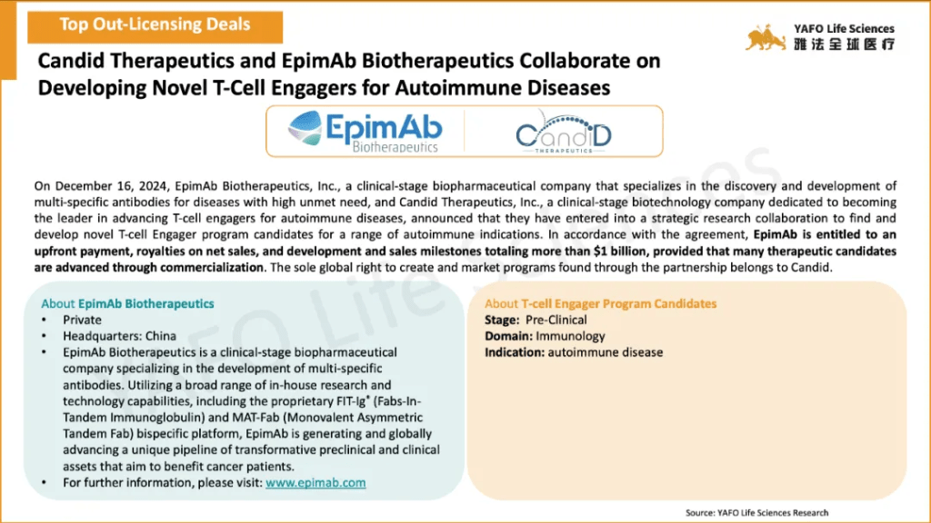 From December 14 to 20, a total of 24 licensing and cooperation deals were signed worldwide. Within China’s biotech industry, there were 10 deals, including 6 out-licensing deals and 4 in-licensing deals.