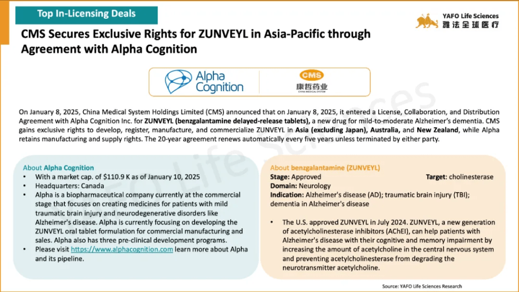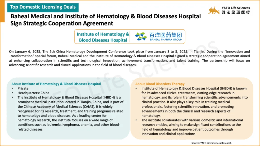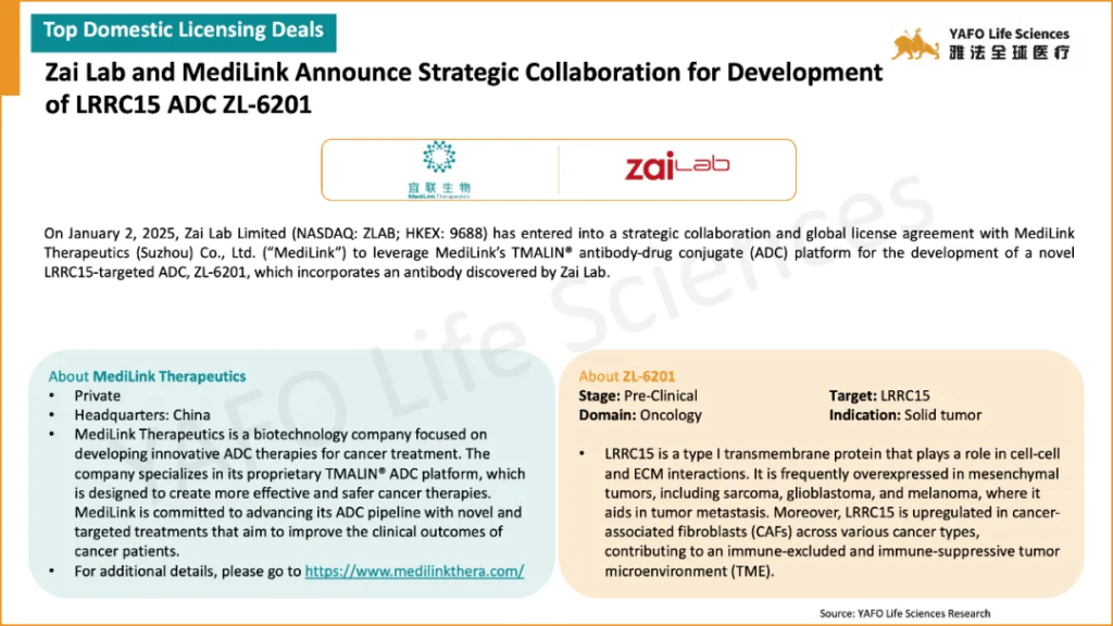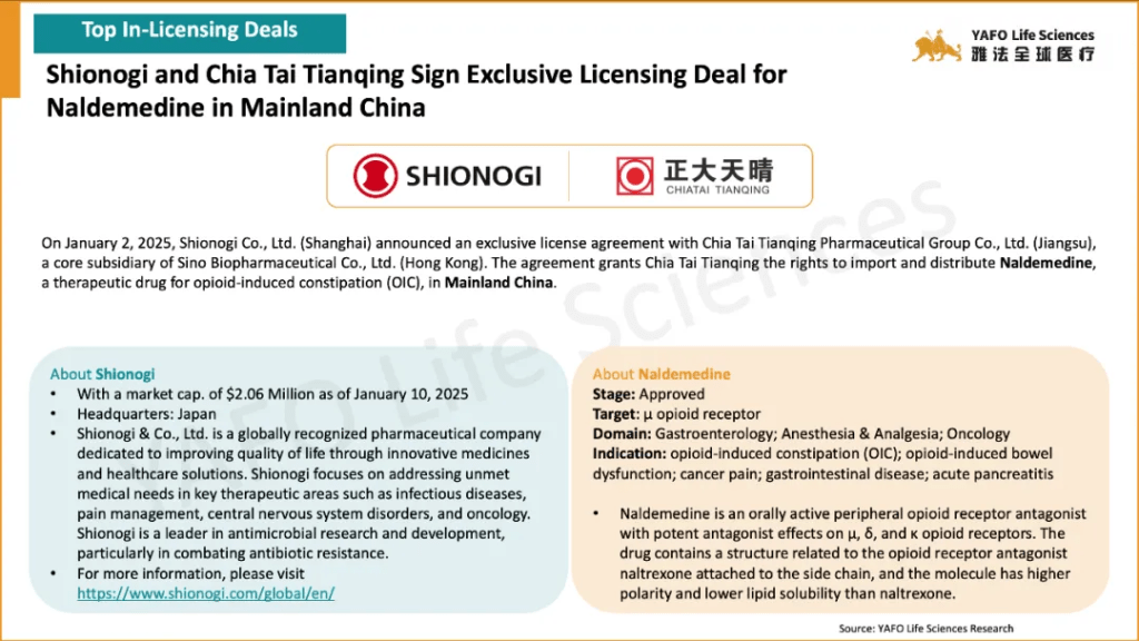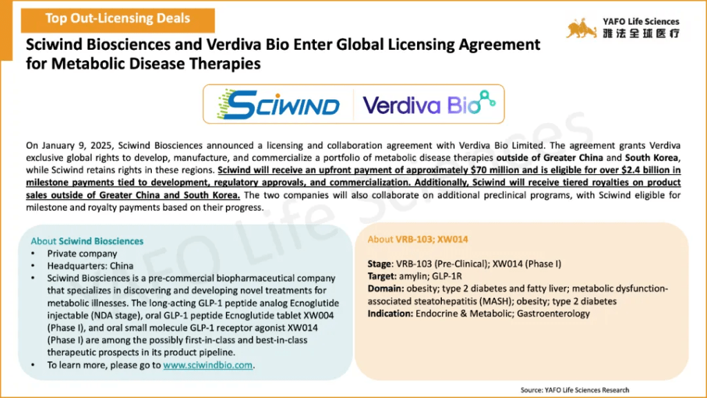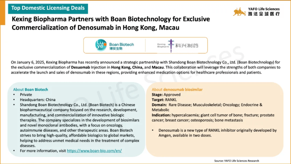 In the first week of January 2025, a total of 37 licensing and cooperation deals were signed worldwide. Within China’s biotech industry, there were 9 out-licensing deals, 3 in-licensing deals, and 4 domestic deals.