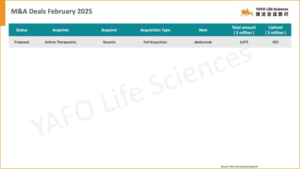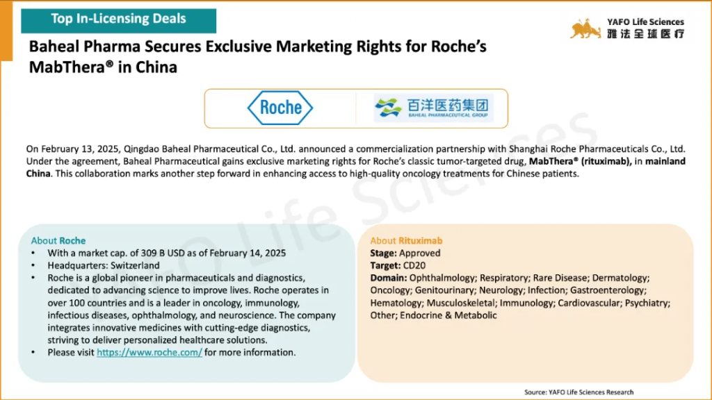 2025年2月8日-14日,全球医药市场共签署了18项资产授权和合作协议。中国市场共达成5项交易,包括3项引进交易、1项出海交易和1项国内交易。