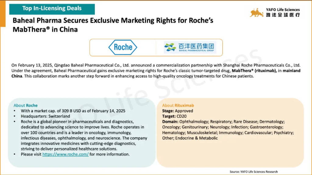 本月中国市场最大的交易是复宏汉霖与Dr. Reddy’s就临床一期资产HLX15(达雷妥尤单抗生物类似药)达成的出海交易,首付款3300万美元,总价值1.32亿美元。