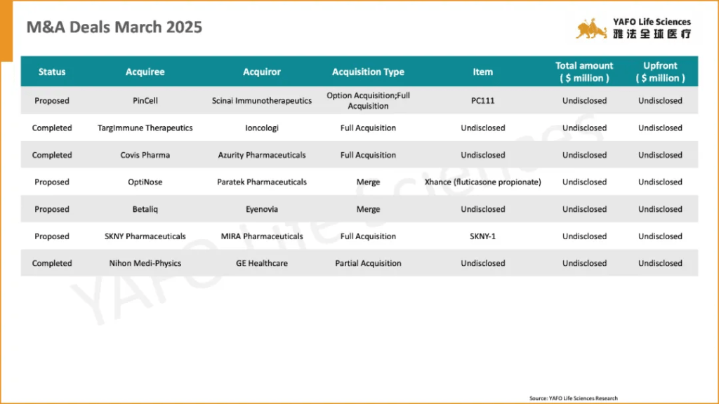 2025年3月,全球医药市场共签署了80项资产授权和合作协议。中国市场共达成24项,包括11项出海交易、3项引进交易和10项国内交易。