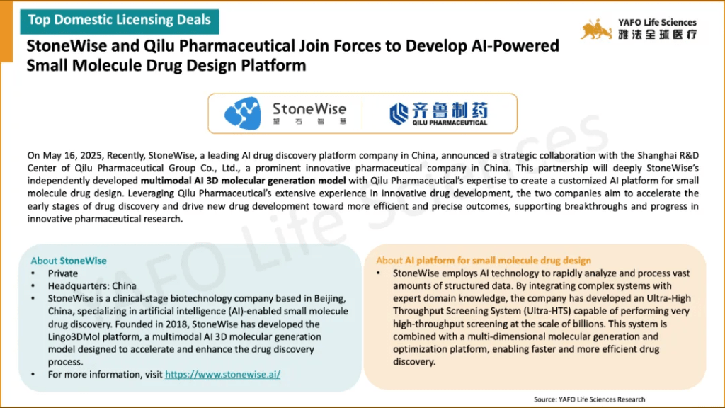 Between May 16 and 23, a total of 12 biopharmaceutical agreements were signed globally. Among them, six deals originated from China, including 4 out-licensing deals, 1 in-licensing deal, and 1 domestic collaboration.