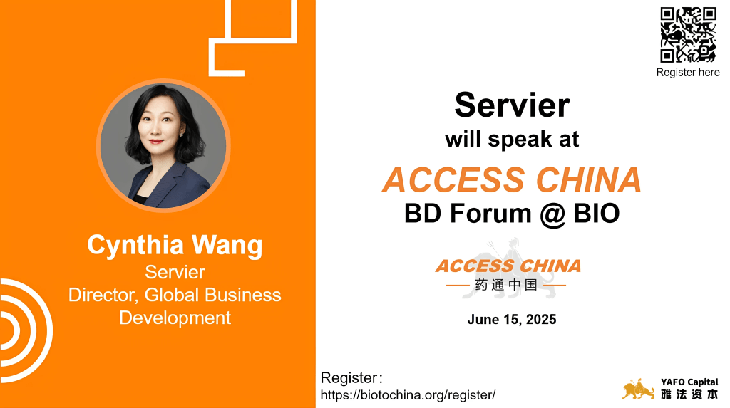 June 15, 2025 (Boston) — We are glad to announce that Cynthia Wang, the Director, Global Business Development of Servier, will be presenting at the ACCESS CHINA BD Forum @BIO on June 15, 2025. ACCESS CHINA Biotech Forum is the largest corporate access event between Asia and the western biopharma industry.