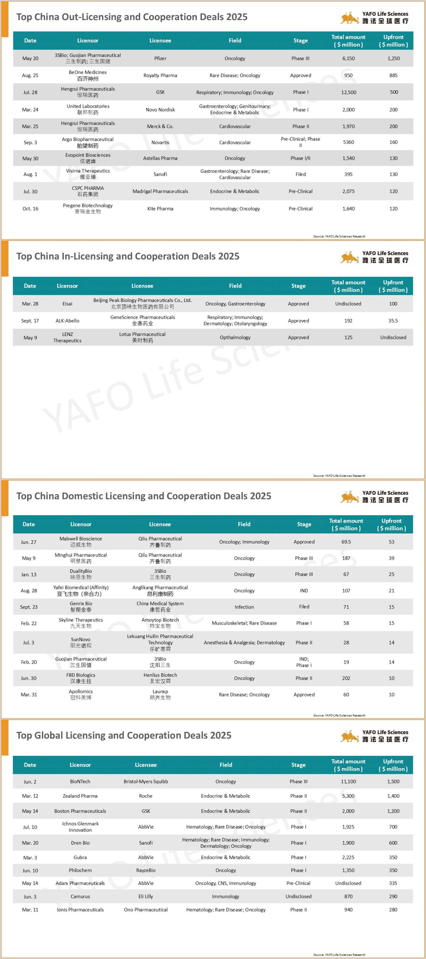 Founded in 2013, YAFO Capital is a Shanghai-based boutique investment and advisory firm, with a professional team in our China, U.S., EU, and SEA offices. Partnering with Pharmaceutical companies, YAFO Fund mainly invests in global assets. YAFO Life Sciences is a leading advisory boutique focused on asset transactions. YAFO has built a strong, proven track record and closed dozens of in-licensing and out-licensing transactions with global pharma and biotech companies. Over the past five years, YAFO has been ranked as the No. 1 advisor for China cross-border licensing transactions. For more information, please visit http://www.yafocapital.com