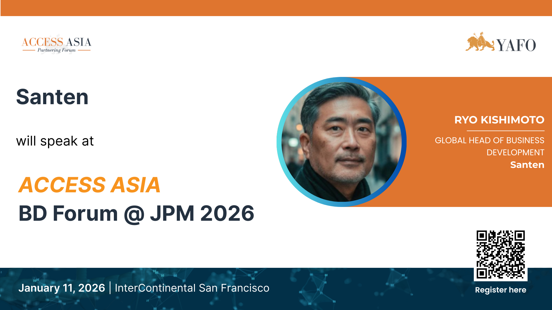 January 11, 2026 (InterContinental San Francisco) — We’re pleased to announce that Ryo Kishimoto, Global Head of Business Development at Santen, will speak at the ACCESS ASIA BD Forum @ JPM 2026.