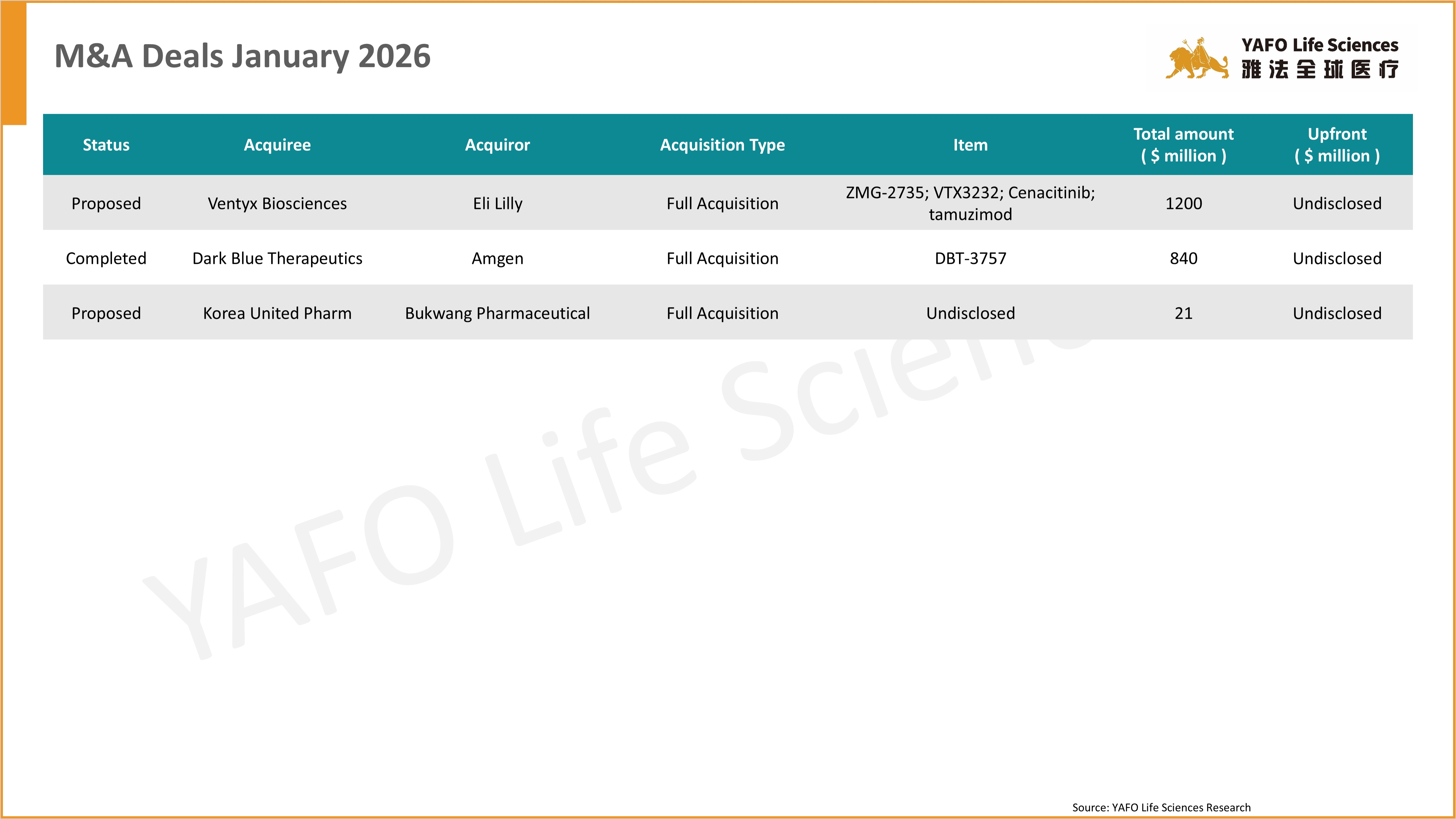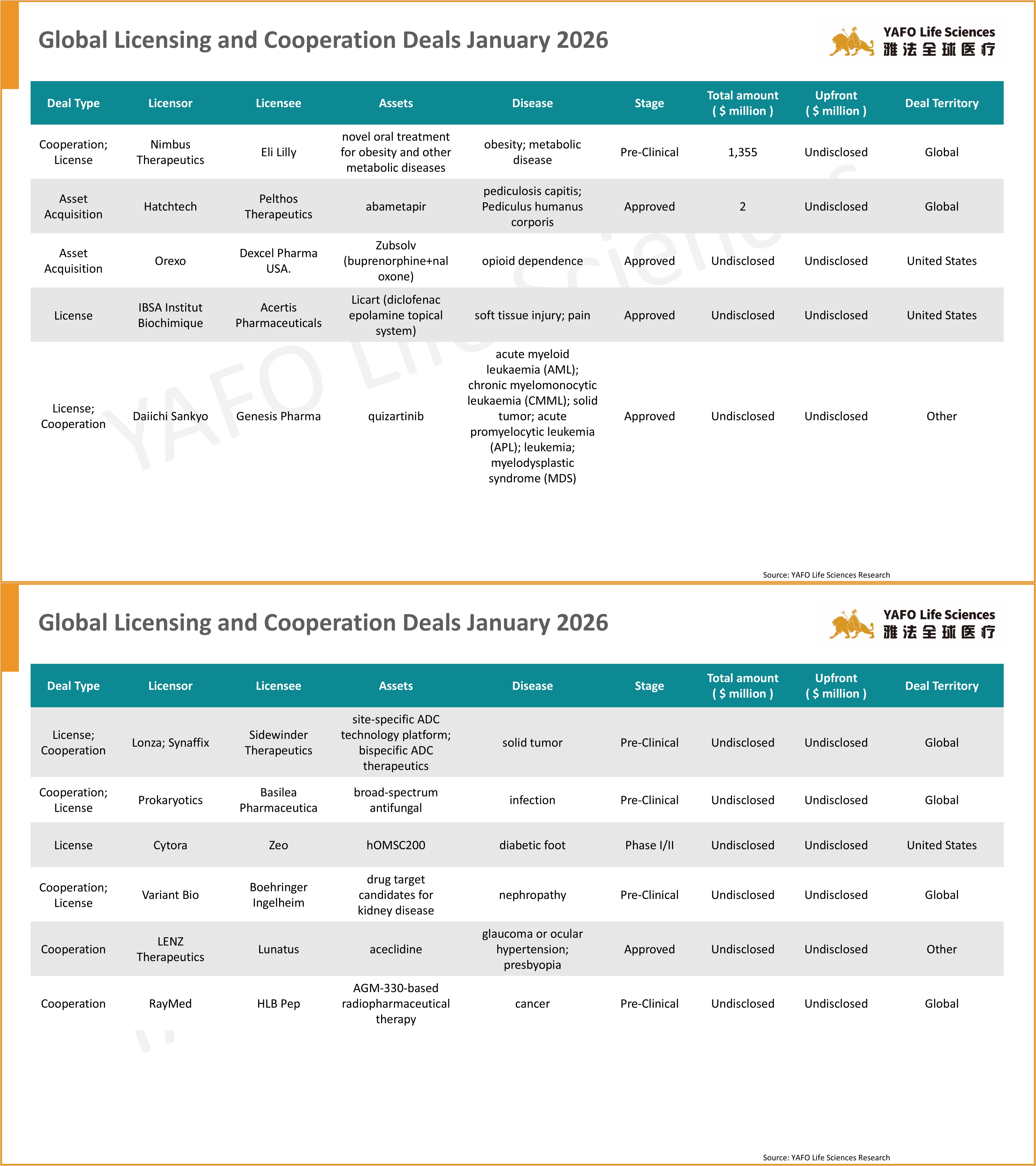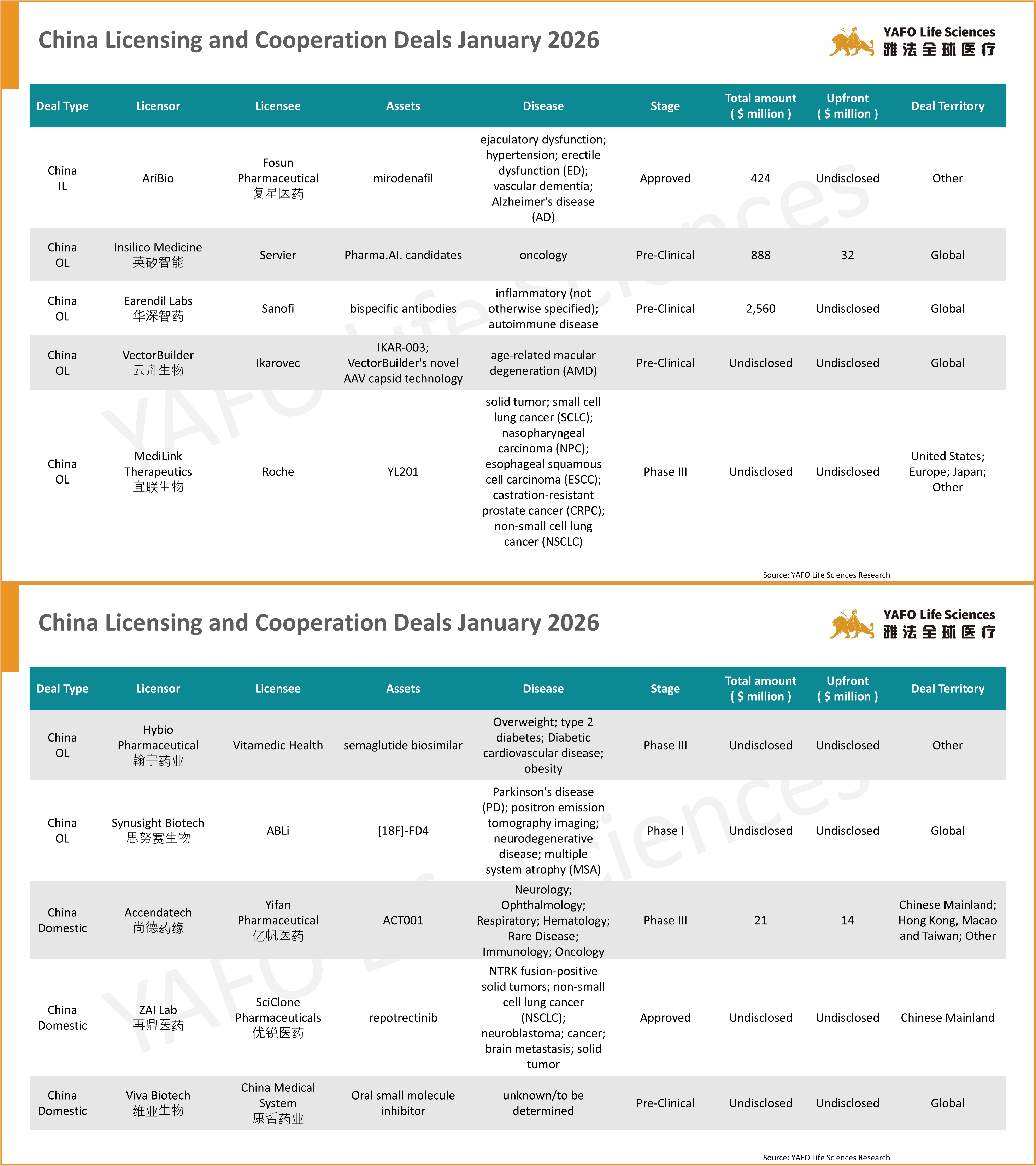 Founded in 2013, YAFO Capital is a Shanghai-based boutique investment and advisory firm, with a professional team in our China, U.S., EU, and SEA offices. Partnering with Pharmaceutical companies, YAFO Fund mainly invests in global assets. YAFO Life Sciences is a leading advisory boutique focused on asset transactions. YAFO has built a strong, proven track record and closed dozens of in-licensing and out-licensing transactions with global pharma and biotech companies. Over the past five years, YAFO has been ranked as the No. 1 advisor for China cross-border licensing transactions. For more information, please visit http://www.yafocapital.com