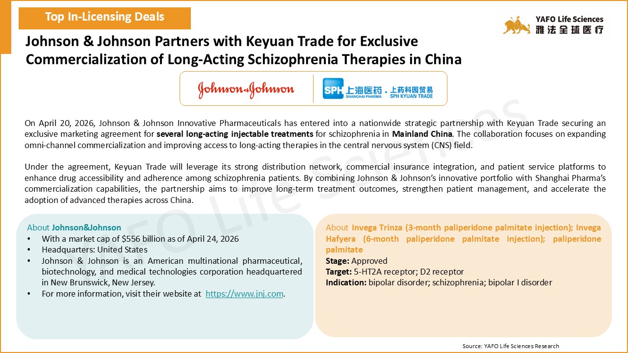 2026年4月18日-24日,全球医药市场共签署了15项资产授权和合作协议。中国市场共达成5项交易,包括3项出海交易、1项引进交易和1项国内交易。